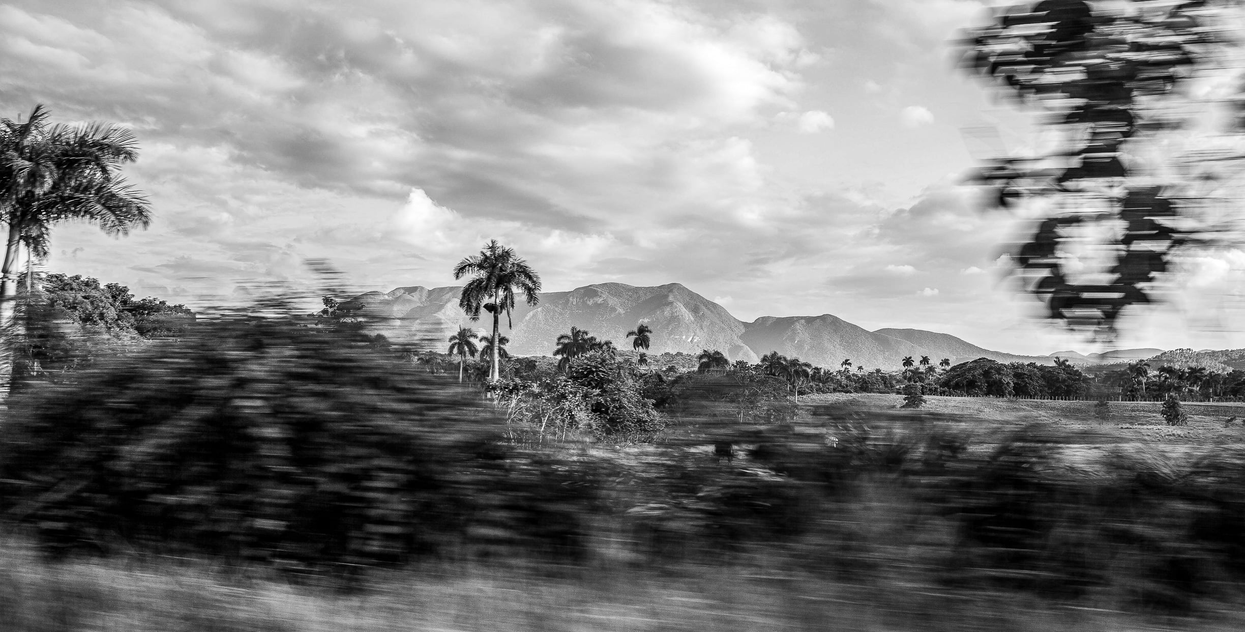 Kalkfelsen wie Skulpturen, Tabakblätter im Dunst –
